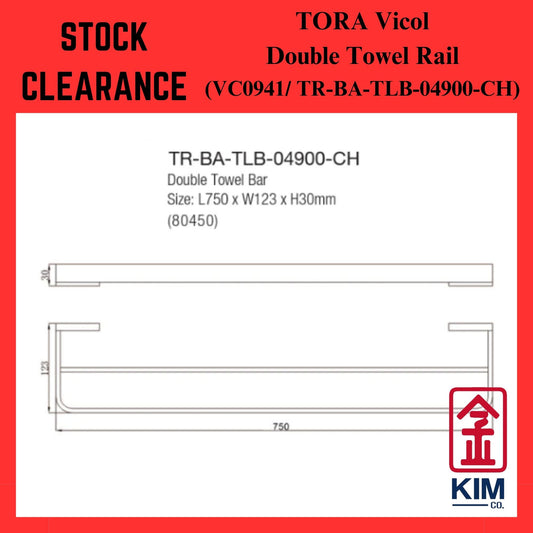 ( Stock Clearance ) Tora Vicol Brass Chrome Double Towel Rail (VC0941/ TR-BA-TLB-04900-CH)