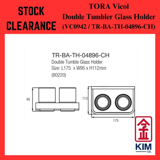 (Stock Clearance) Tora Vicol Brass Chrome Double Tumbler Glass Holder (VC0942 / TR-BA-TH-04896-CH)