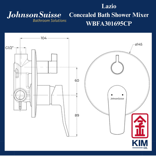 Johnson Suisse Lazio Concealed Bath Shower Mixer (WBFA301695CP)