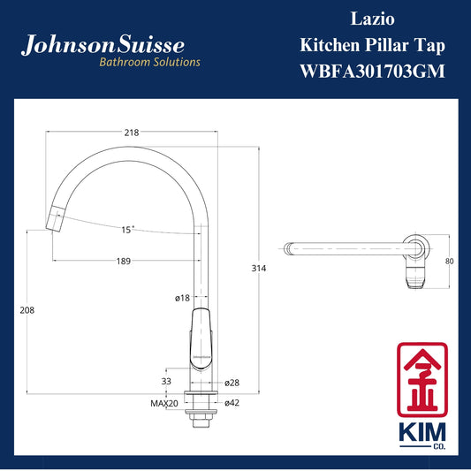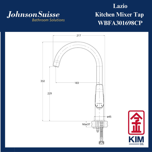 Johnson Suisse Lazio Deck Mounted Kitchen Sink Tap (WBFA301703CP)