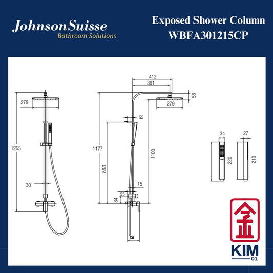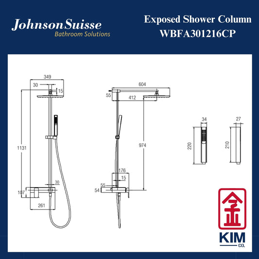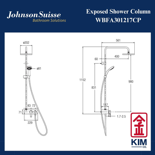 Johnson Suisse Shower Column 11” Abs Shower Head & Abs Hand Shower (WBFA301215CP)