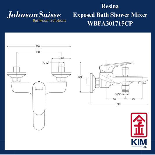 Johnson Suisse Resina Exposed Bath Shower Mixer Without Shower Kit (WBFA301715CP)