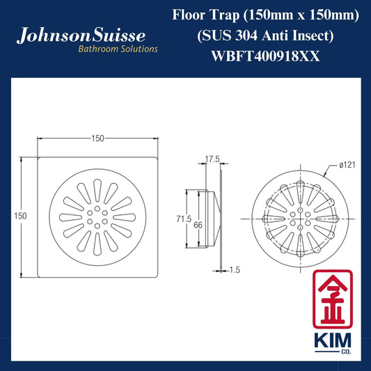 Johnson Suisse Stainless Steel 304 Floor Trap (WBFT400918XX)