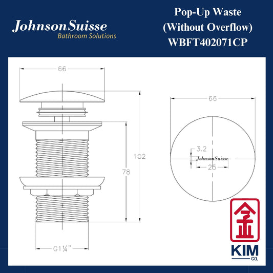 Johnson Suisse Brass Push Up Pop Up Waste Without Overflow (WBFT402071CP)