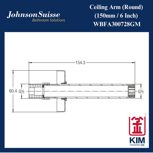 Johnson Suisse Brass Ceiling Shower Arm (150mm) (WBFA300728CP)