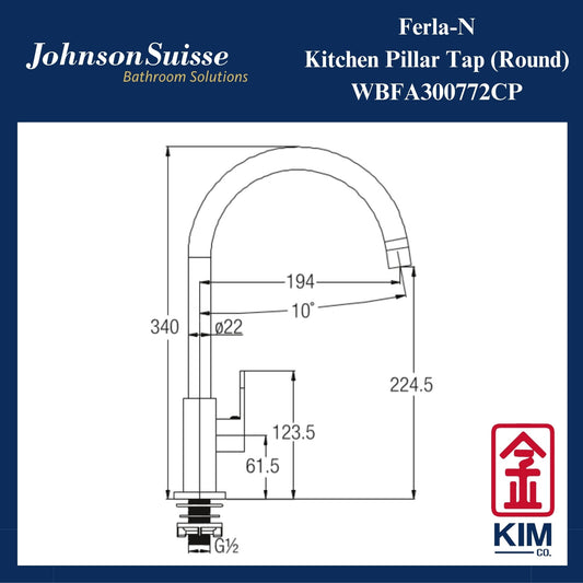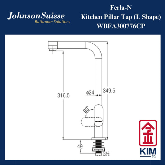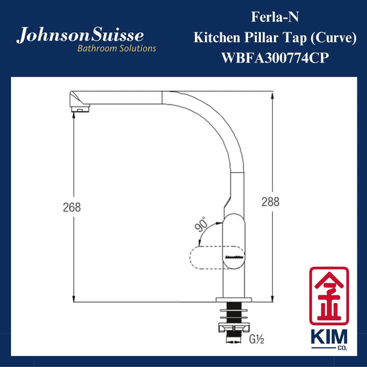 Johnson Suisse Ferla-N Deck Mounted Kitchen Sink Tap (WBFA300774CP)