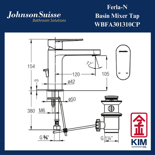Johnson Suisse Ferla-N Basin Mixer Cw Pop Up Waste (WBFA301310CP)
