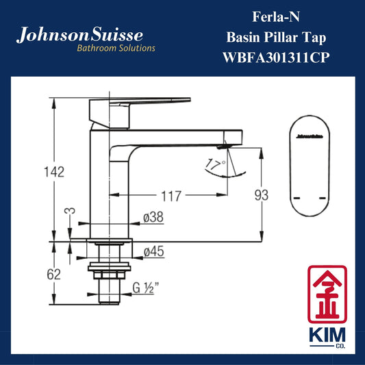 Johnson Suisse Ferla-N Mezzo Plus Basin Pillar Tap (WBFA301347CP)
