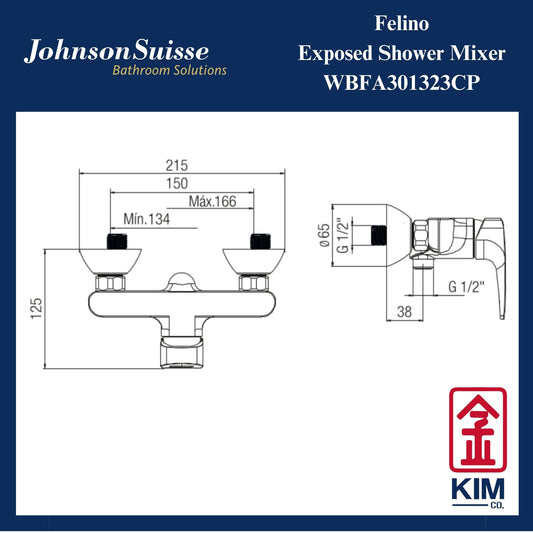 Johnson Suisse Felino Exposed Shower Mixer Without Shower Kit (WBFA301323CP)