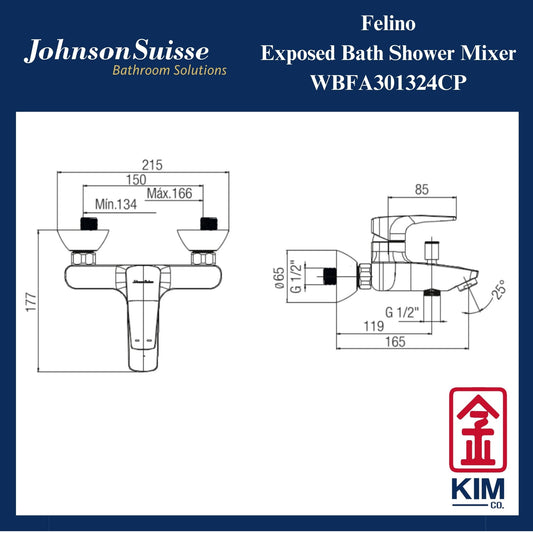 Johnson Suisse Felino Exposed Bath Shower Mixer Without Shower Kit (WBFA301324CP)