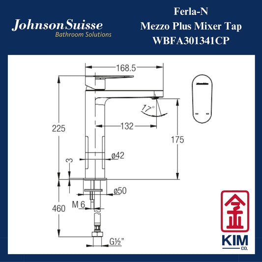 Johnson Suisse Ferla-N Mezzo Plus Basin Mixer Without Pop Up Waste (WBFA301341CP) )