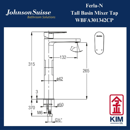 Johnson Suisse Ferla-N Tall Basin Mixer Without Pop Up Waste (WBFA301342CP)