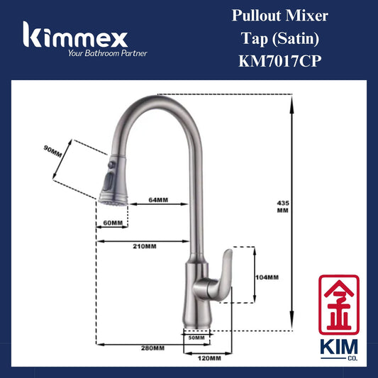 kimmex Deck Mounted Pull Out Kitchen Sink Mixer Tap (Satin) (KM7017CP)