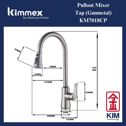 kimmex Deck Mounted Pull Out Kitchen Sink Mixer Tap (GunMetal) (KM7018CP)