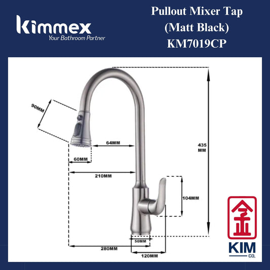 kimmex Deck Mounted Pull Out Kitchen Sink Mixer Tap (Matt Black) (KM7019CP)