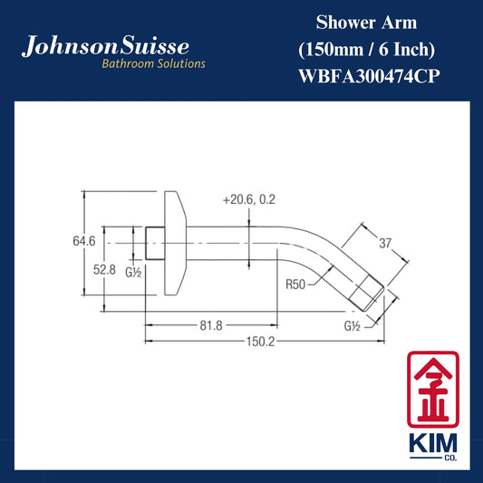 Johnson Suisse Brass Shower Arm (150mm) (WBFA300474CP)