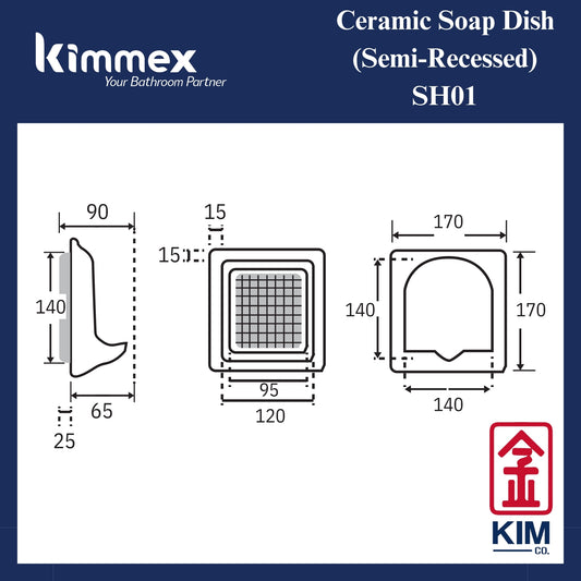 kimmex Ceramic Semi Recessed Soap Dish (SH01)