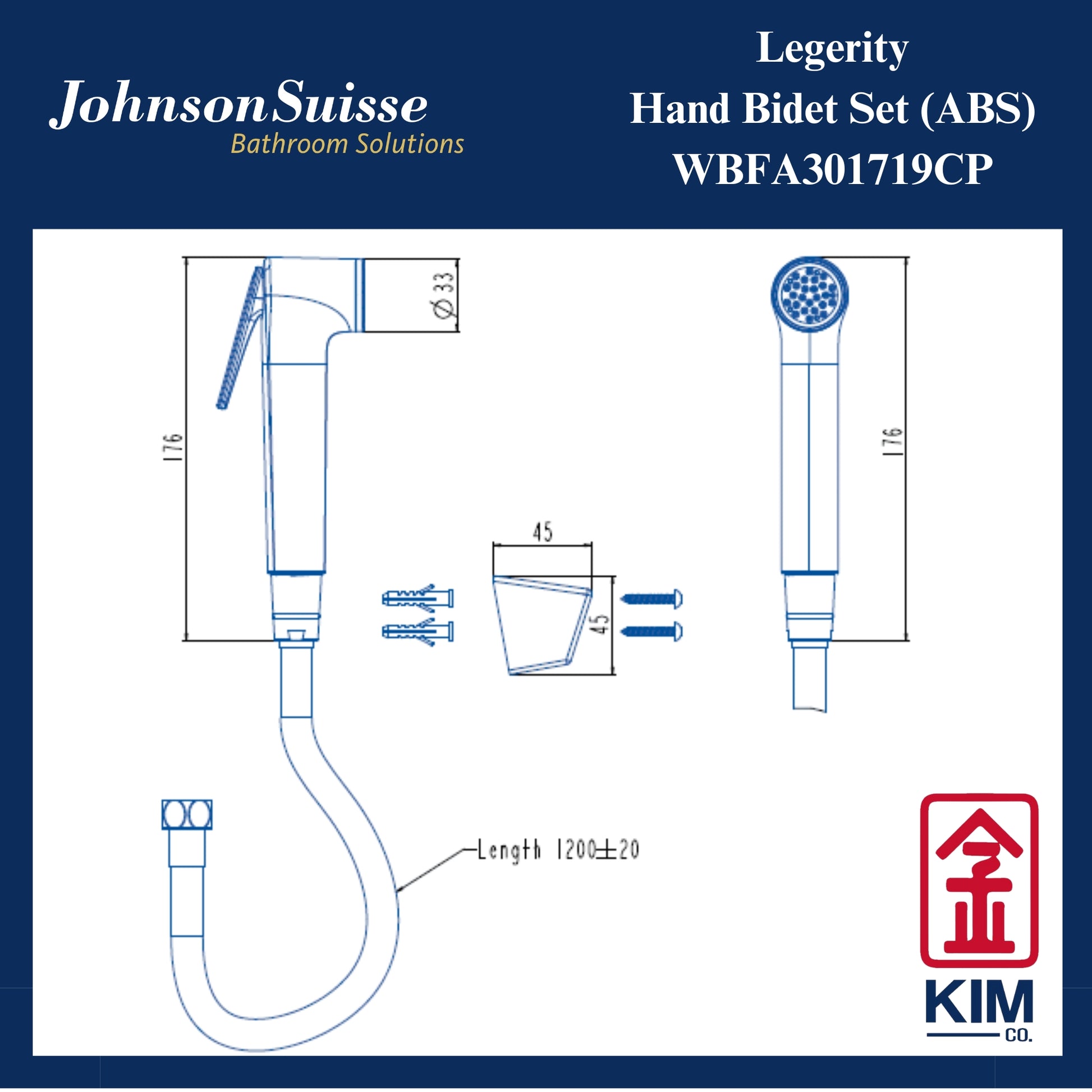Johnson Suisse Legerity ABS Hand Bidet Cw 1.2m Bidet Hose & Wall Bracket (WBFA301719CP)