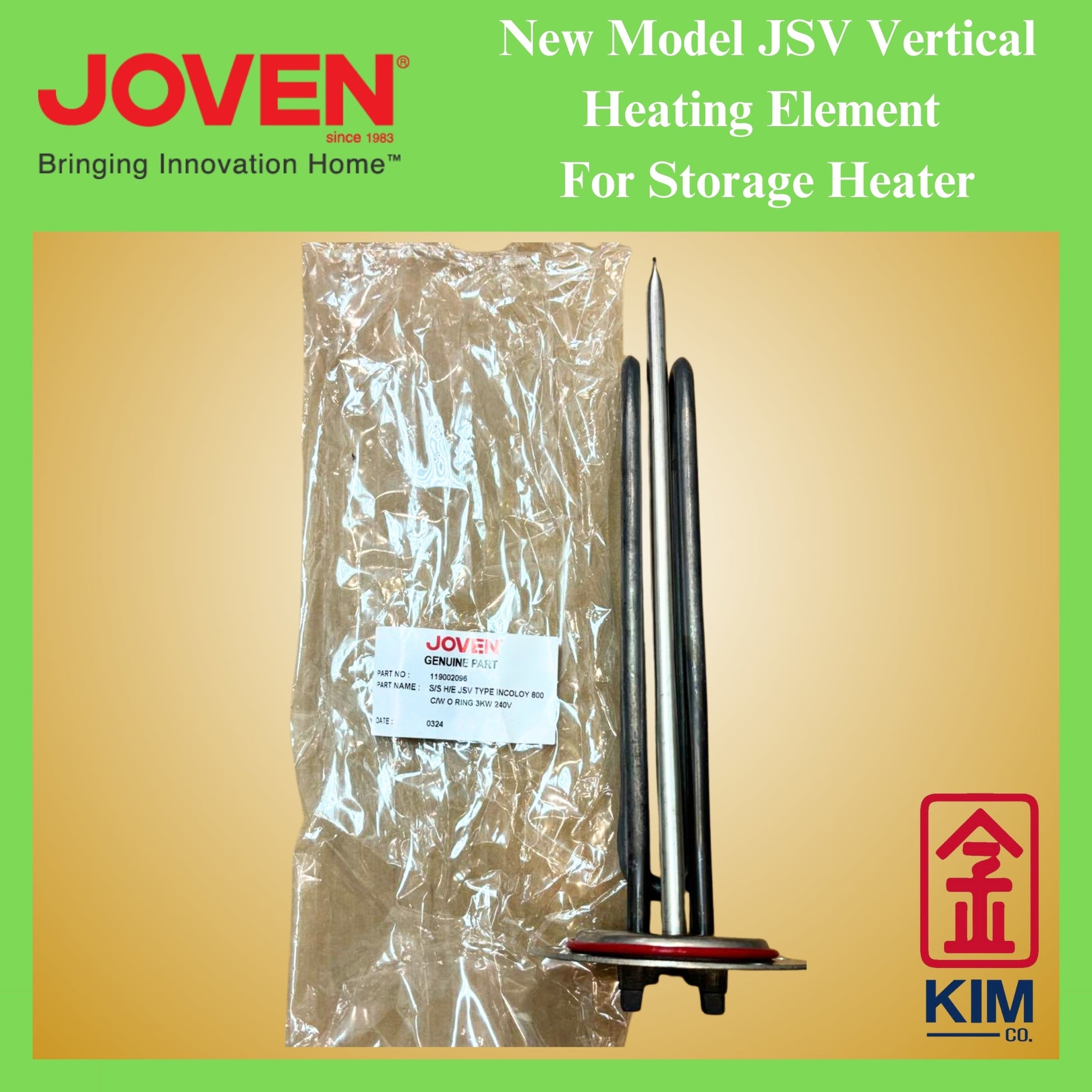 Joven Genuine Part New Model JSV Heating Element For Vertical Water Storage Heater (S/Steel)