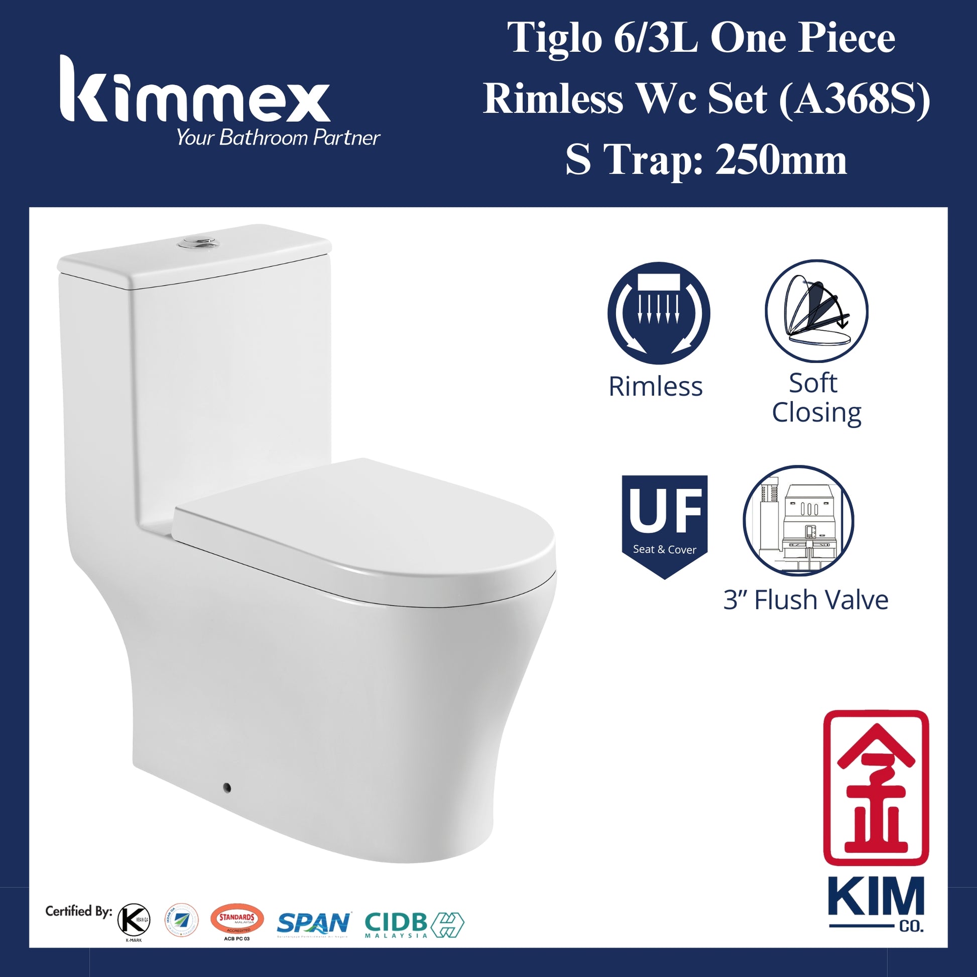 kimmex Tiglo 6/3L Rimless One Piece Wc Set Cw UF Soft Close Seat & Cover